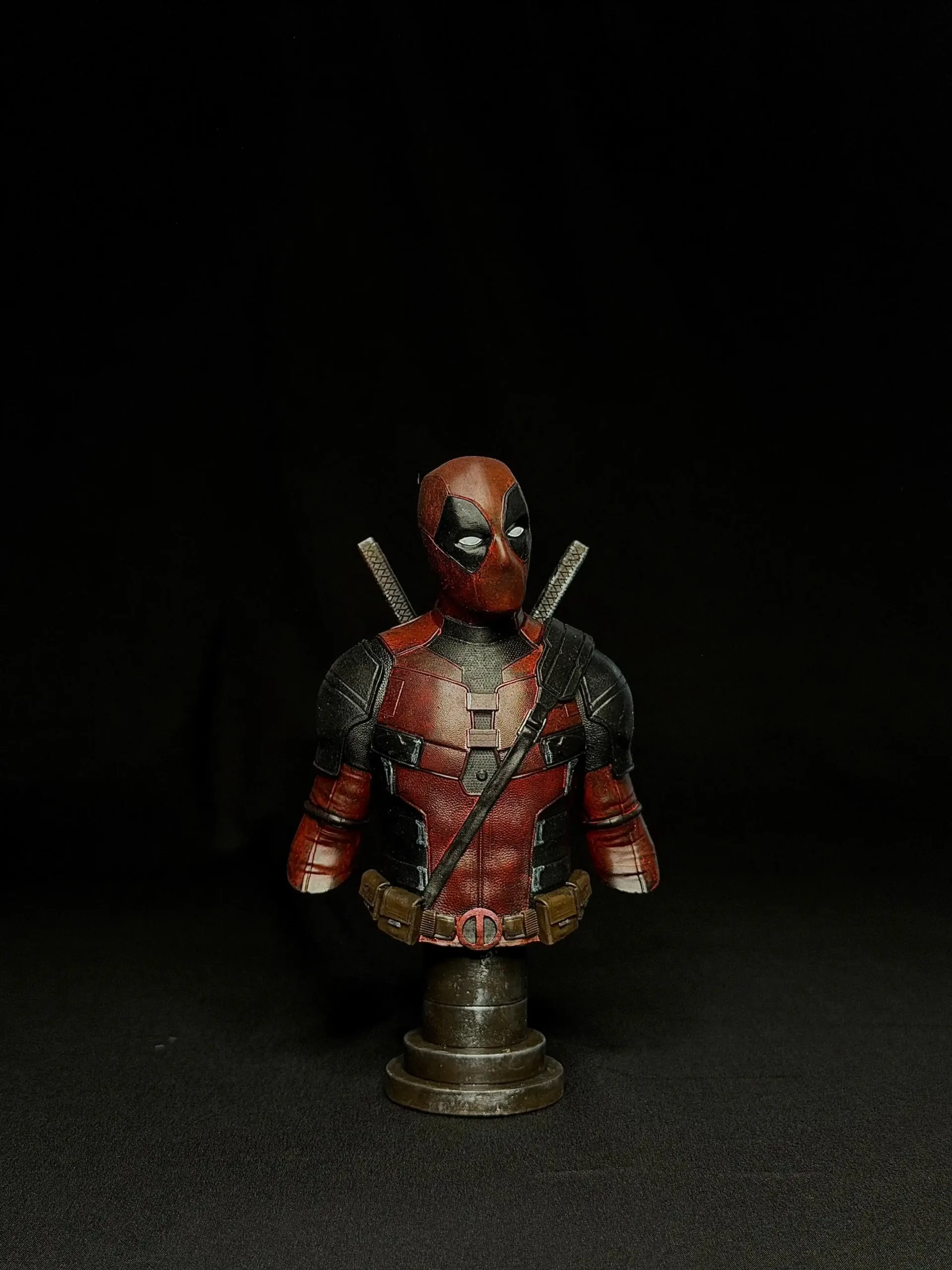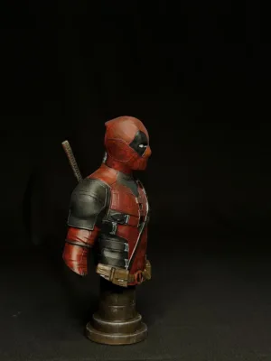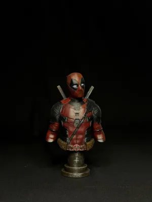 This premium Deadpool bust captures the perfect blend of attitude, mischief, and battle-ready style. His textured red-and-black suit, gear straps, and iconic twin katanas are sculpted with impressive precision, bringing authentic depth to every panel, fold, and metallic edge. The expression — calm yet chaotic — stays true to the character’s unpredictable charm.