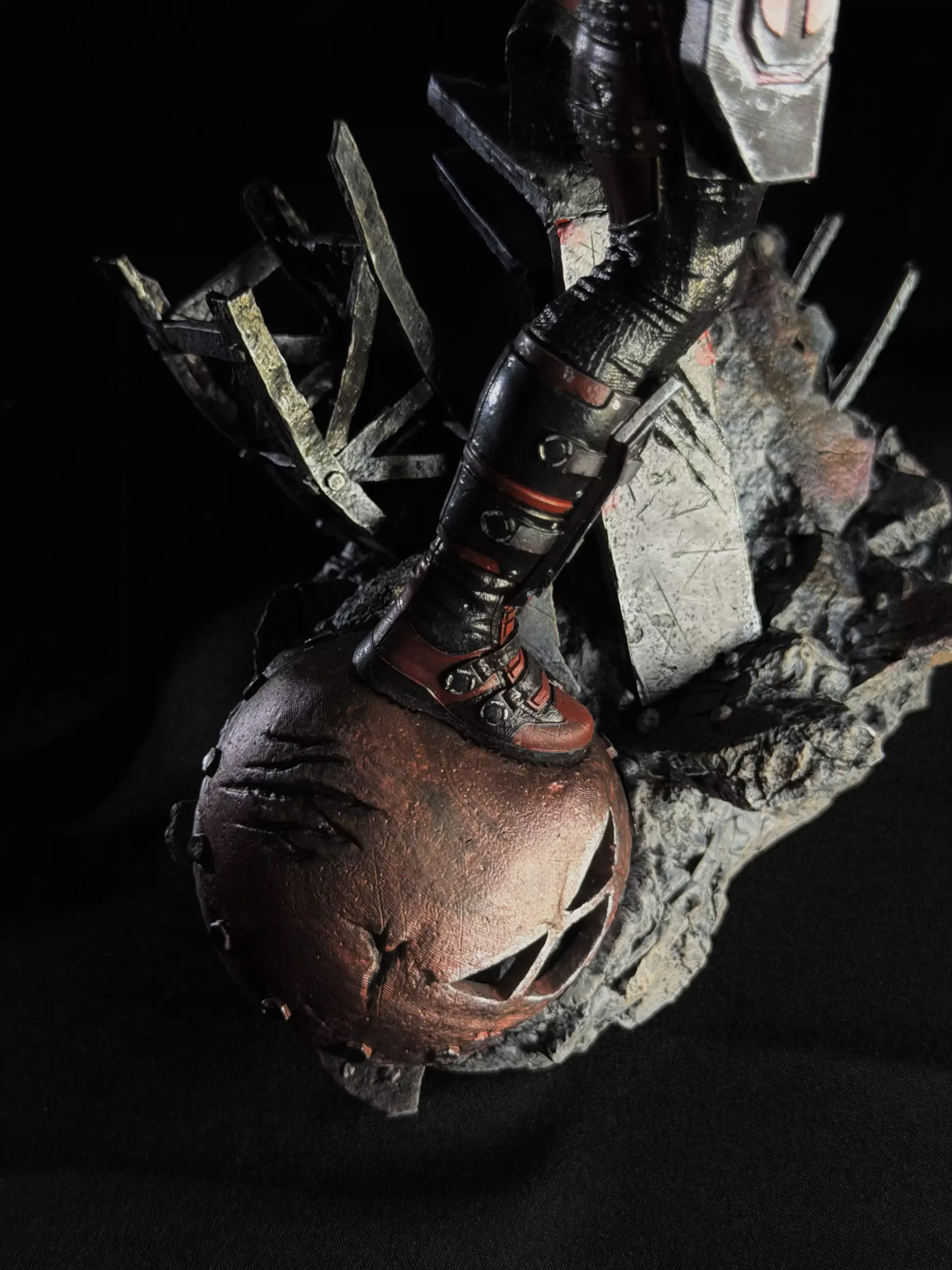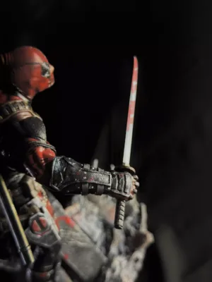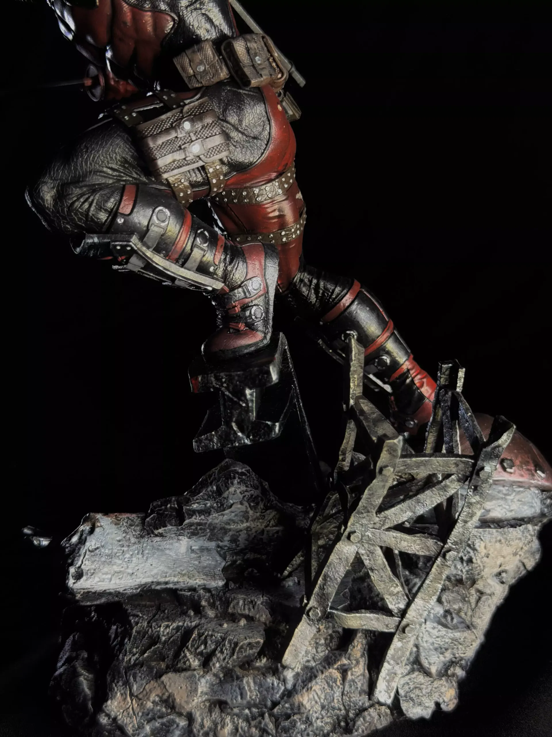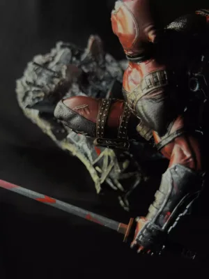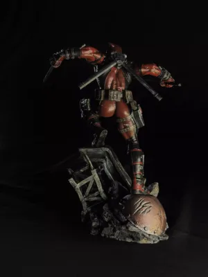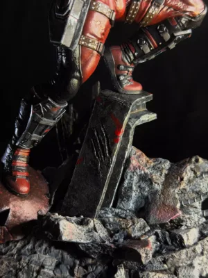 A masterpiece made in Sri Lanka – this meticulously hand-painted figure captures the masked antihero frozen in a moment of battle, blades drawn and poised for action atop a shattered ruin. Every detail, from the weathered textures to the rich crimson armor, was brought to life through over 18 hours of dedicated painting, showcasing the passion and precision of Sri Lankan artistry.